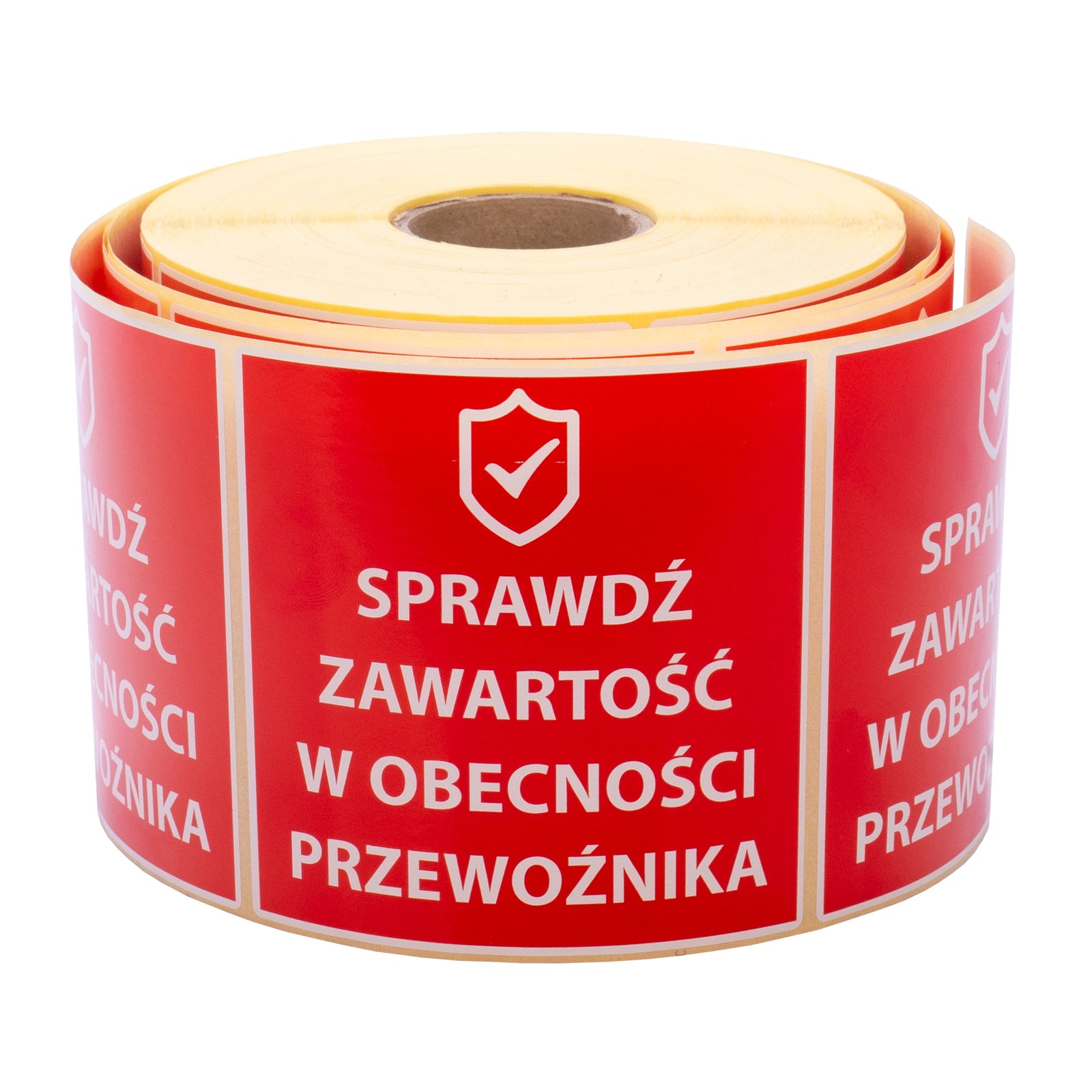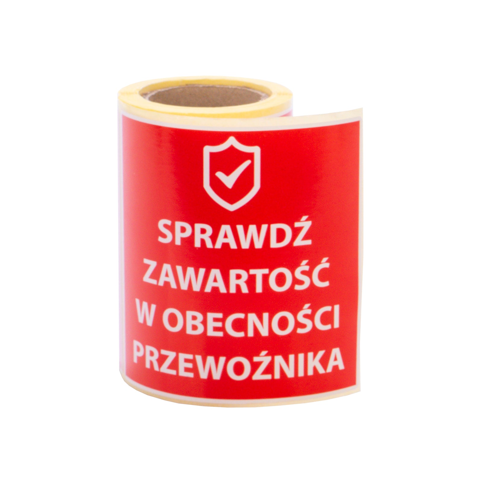 Etykiety ostrzegawcze- Sprawdź zawartość- 98x98mm 100 szt.