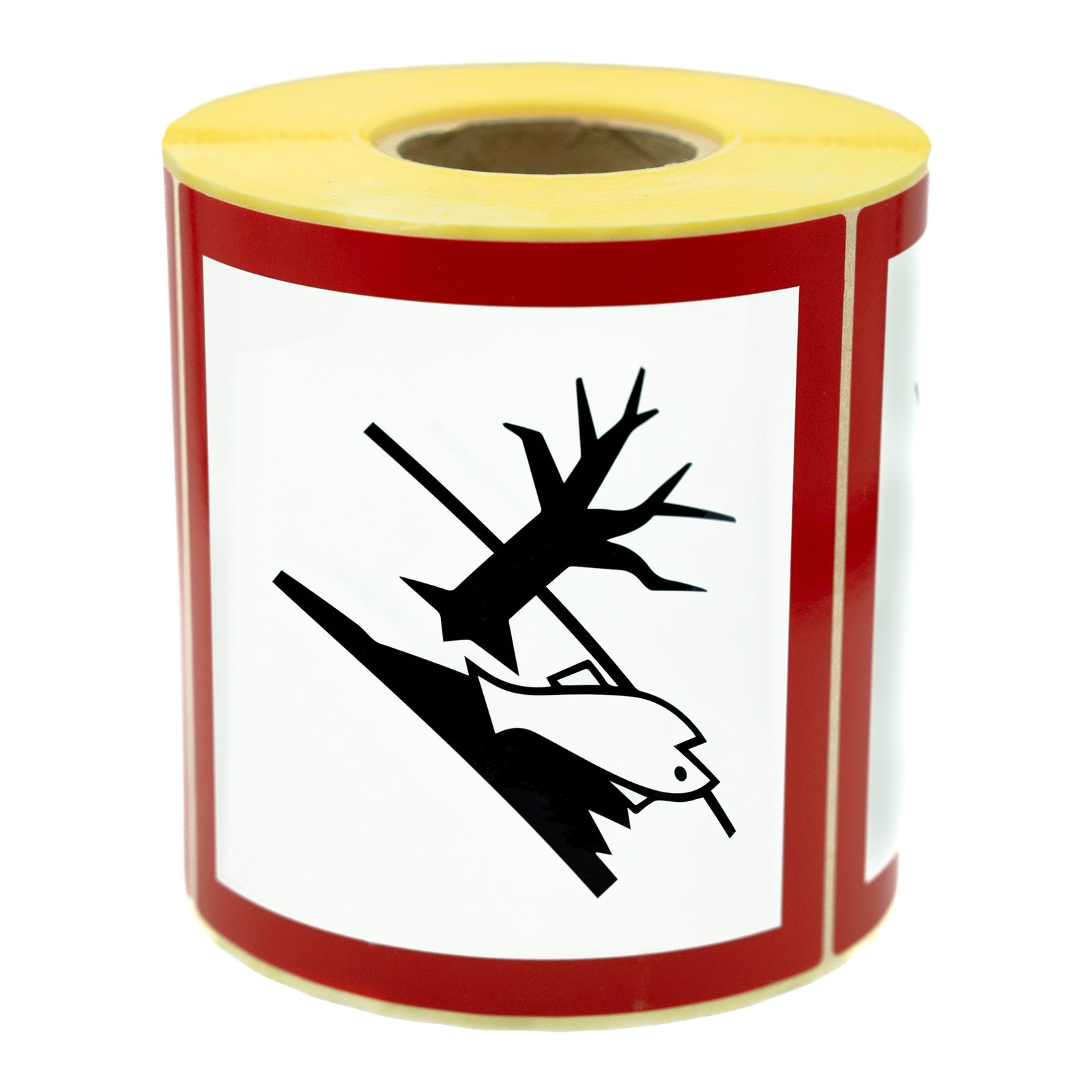 Etykiety ostrzegawcze ZNAK GHS 08 Zagrożenie dla środowiska 100x100mm 500 szt.