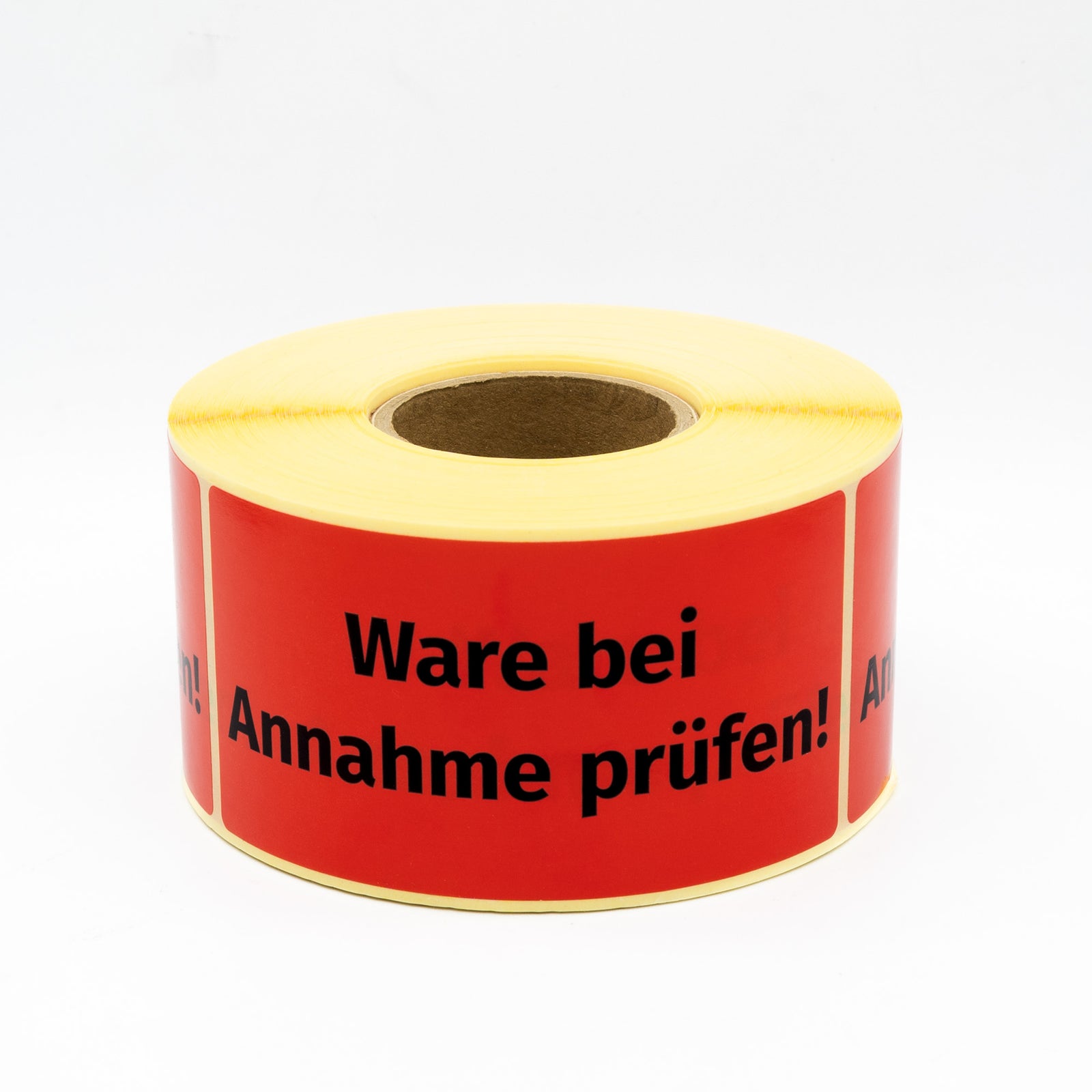 Etykiety ostrzegawcze na rolce 100 x 50 mm WARE BEI ANNAHME PRÜFEN! 500 szt.