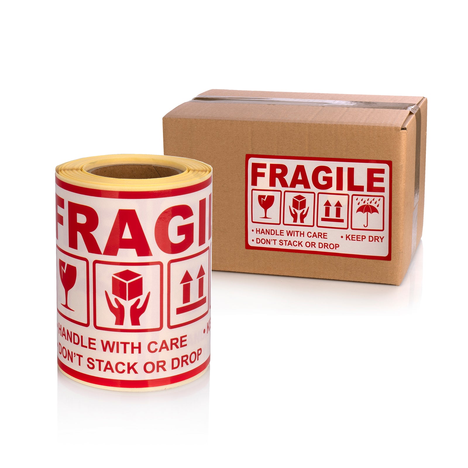 Warning Labels on Roll 90x150 mm 300 pcs FRAGILE- handle with care- keep dry- don’t stack or drop- this way up