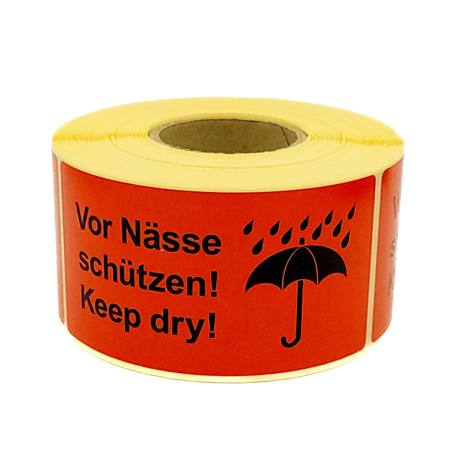 Etykiety ostrzegawcze na rolce 100 x 50 mm Vor Nässe schützen! Przechowywać w suchym miejscu! 500 szt.