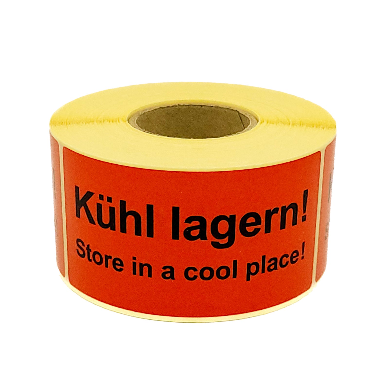 Etykiety ostrzegawcze na rolce 100 x 50 mm- Kühl lagern! Store in a cool place! 500 szt.