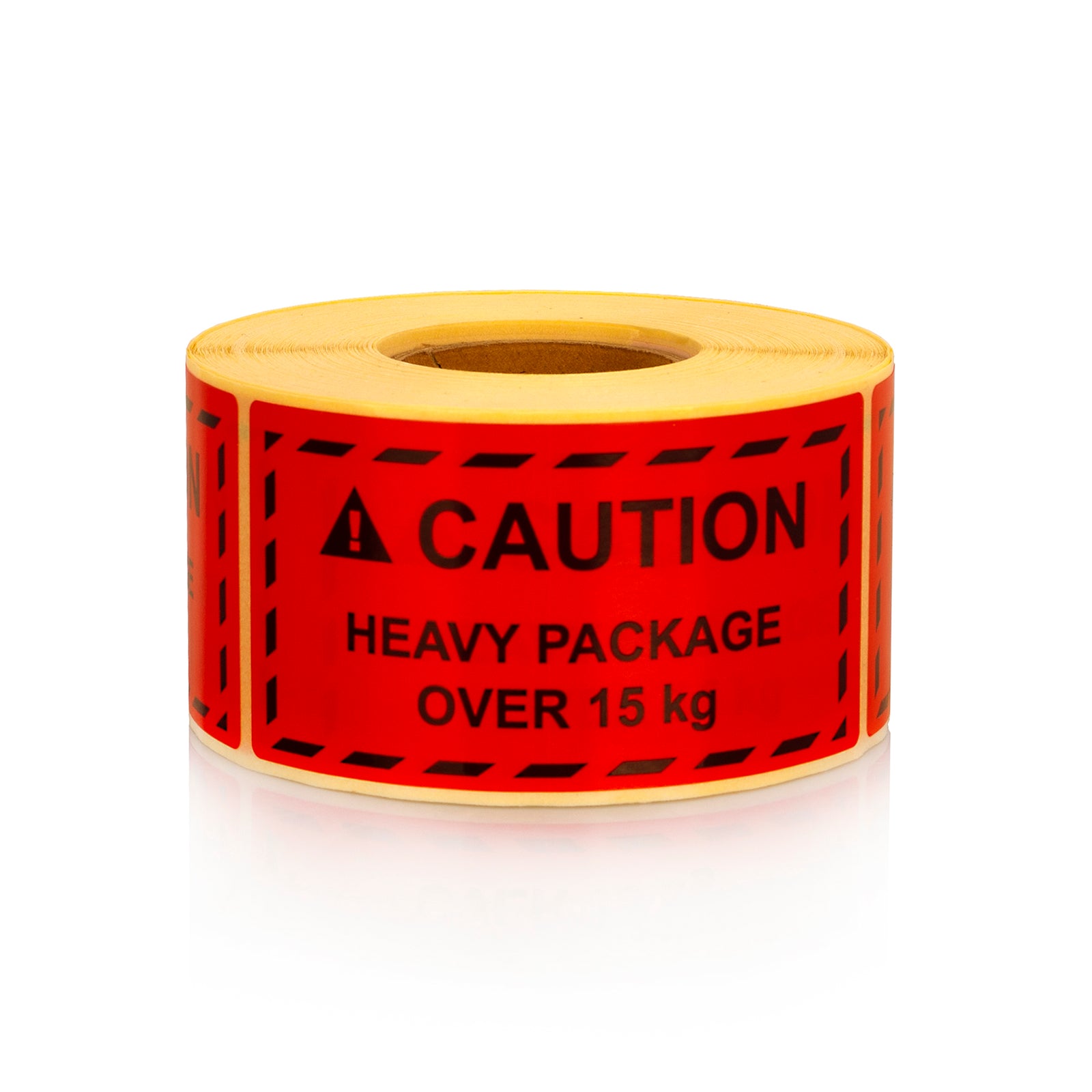 Etykiety ostrzegawcze 100 x 50 mm CAUTIO-CAUTION- Heavy package over 15 kg Etykiety ostrzegawcze dla dostawców Amazon i FBA Fulfillment 500 szt.