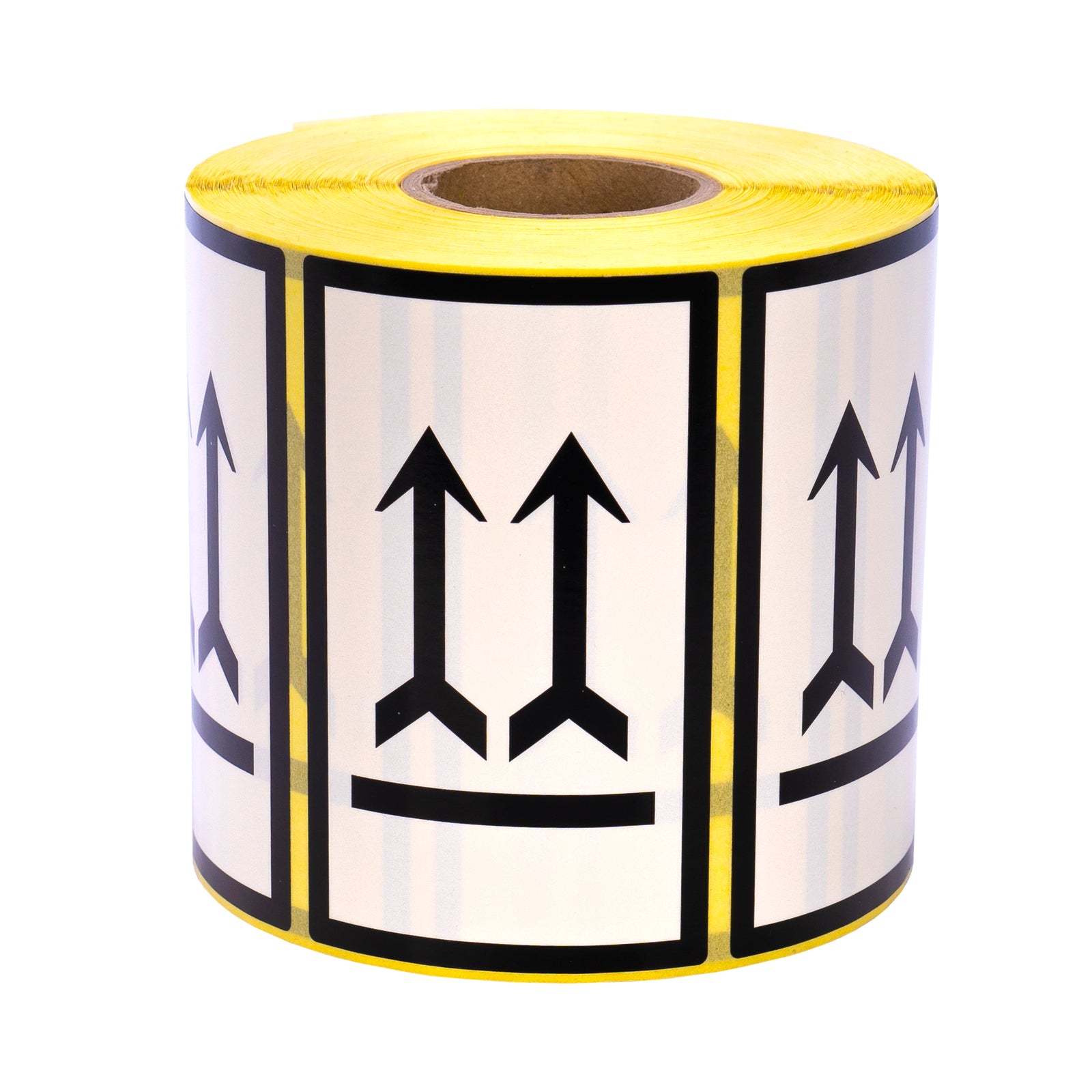 Etykiety ostrzegawcze na rolce 68x161 mm - Delikatne - Ostrożnie - Przechowywać w suchym miejscu - Nie układać w stosy ani nie upuszczać - This Way Up 200 szt.